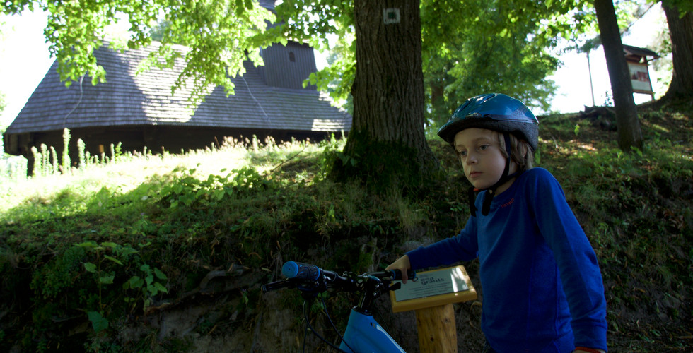 V projekte kultúrne dedičstvo ma okrem troch krátkych filmov čaká aj práca fotografa na niekoľkých objektoch, ktoré sa z grantov EHP rekonštruovali. Ako prvý fotovýlet som si zvolil fotenie drevených kostolíkov na cyklotrase IKON. Toto je jediná moja práca mimo Košíc. Ostatné pamiatky sú tam. A tak som si povedal, že keď už fotím cyklocestu, tak vezmem aj Olivera, aby som na tomto fotovýlete nebol sám. Tešil sa, že si vezme babkin nový bicykel, s odpruženou vydlou. On taký zatiaľ nemá:) Keď som večer pozrel cestu k prvému objektu, trošku ma zamrazilo. Vzdialenosť cca 130 kilometrov a čas dojazdu niečo viac ako tri hodiny! Rozmýšľal som, kam to vlastne ideme? Nechcelo sa mi veriť, že pôjdeme tak dlho. Ale pre istotu som začal nakladať auto o siedmej ráno. Predsa len sme boli dohodnutý na desiatu hodinu. Oliverovi som kúpil vo Svidníku raňajky a potom sa môj cestovný partner za Domašou odmlčal. zmohla ho únava a až do Topole si pospal. Na moje prekvapenie sme tam dorazili naozaj po takmer troch hodinách. Ale keď som sledoval cestu, ani som sa nečudoval. Krásne malé cestičky cez kopce. S bicyklami na streche, som sa ani veľmi neponáhľal. V Topoli sme sa zdržali takmer dve hodiny. Fotili sme tam drevený kostolík a starý židovský cintorín. Naša ďalšia zastávka mal byť kostolík v obci Šmigovec. Keďže v Topoli som nikde nechytil signál, ani som sa nevedel dohodnúť na sprístupnení kostolíka. Ale aj napriek tomu sme sa vybrali na cestu. Do Šmigovca mi to ukázalo necelých 60 KM, ale cca hodinu jazdy autom. Cestou, keď som narazil na mobilný signál, som dohodol, aby nás tam čakali. Kostolík sme našli rýchlo. Všetky pamiatky na tejto cyklotrase boli veľmi pekne značené, takže naozaj sa nestane, že by ich ktokoľvek mohol prehliadnuť. Teda, iba ak by mal zavreté oči :)